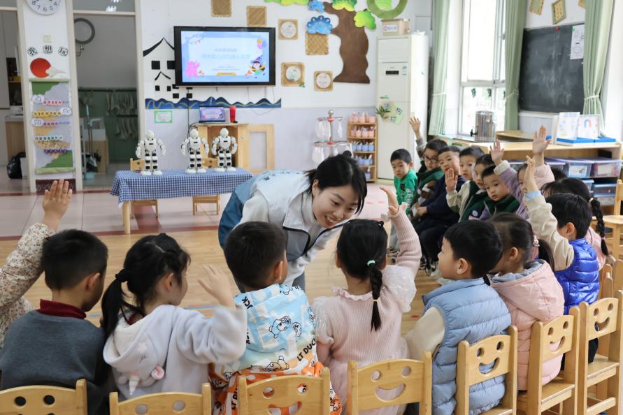 为激发幼儿对人工智能(AI)的兴趣,3月12日,教育学部“智教先锋”志愿服务队师生党员走进河南师大附属幼...