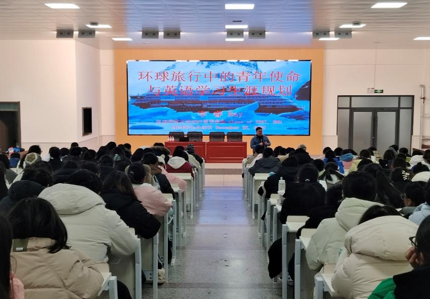 旅游学院举办“环球旅行中的青年使命与英语学习生涯规划”讲座