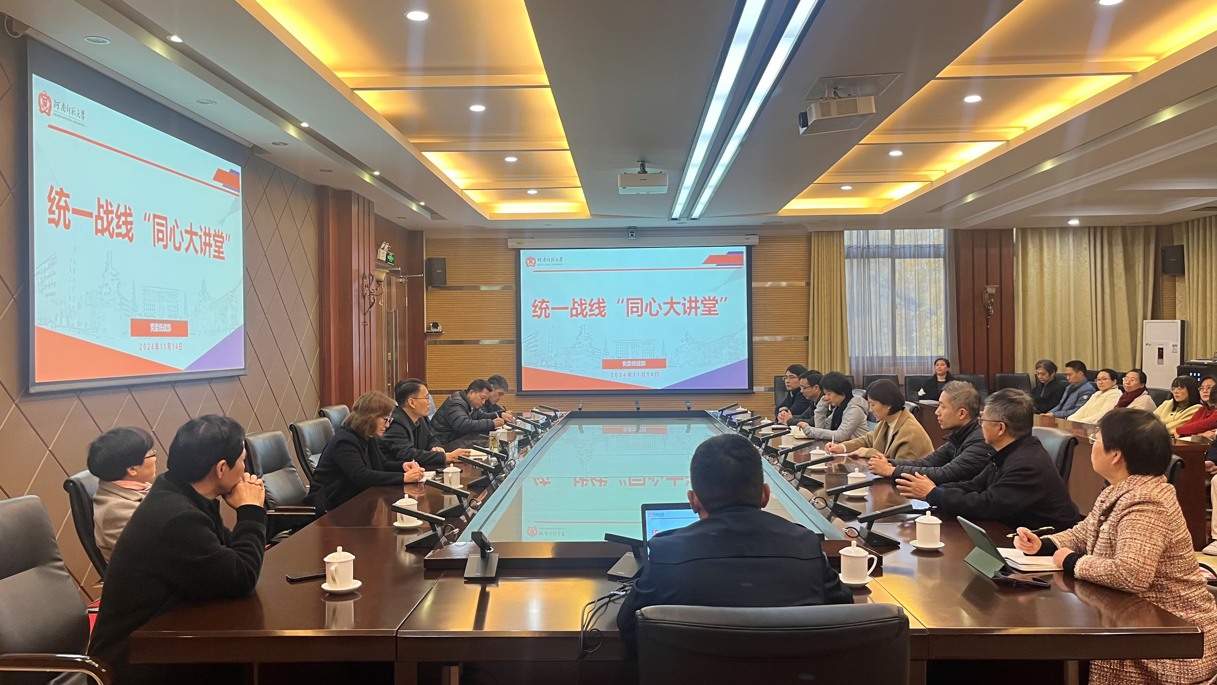 11月14日,我校统一战线“同心大讲堂”活动在勤政楼第三会议室举行。各民主党派及统战团体负责人、统战成员...