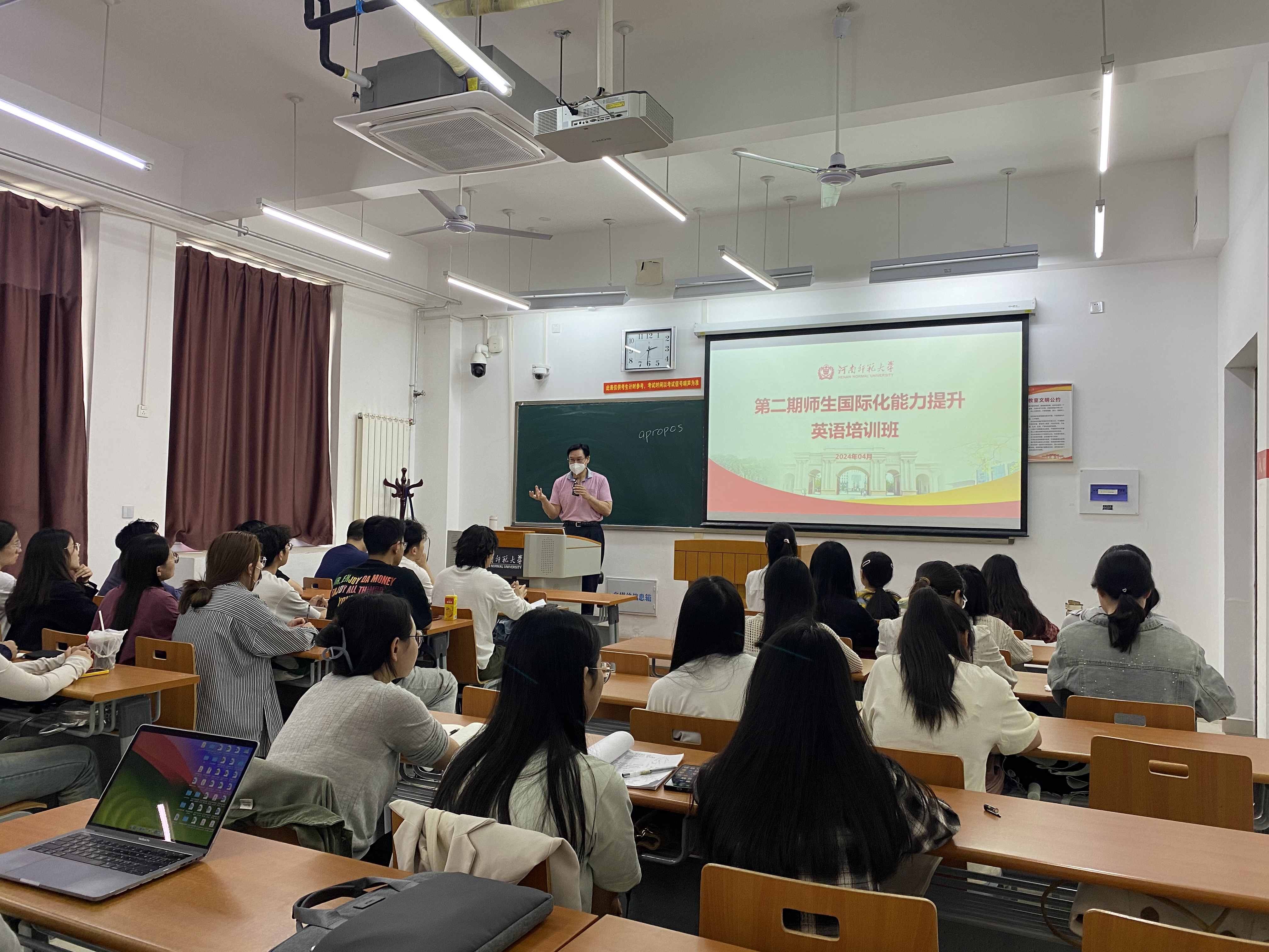 4月18日下午,我校第二期师生国际化能力提升培训班在文昌楼534教室正式开课。经个人申报、学院推荐、学校选...