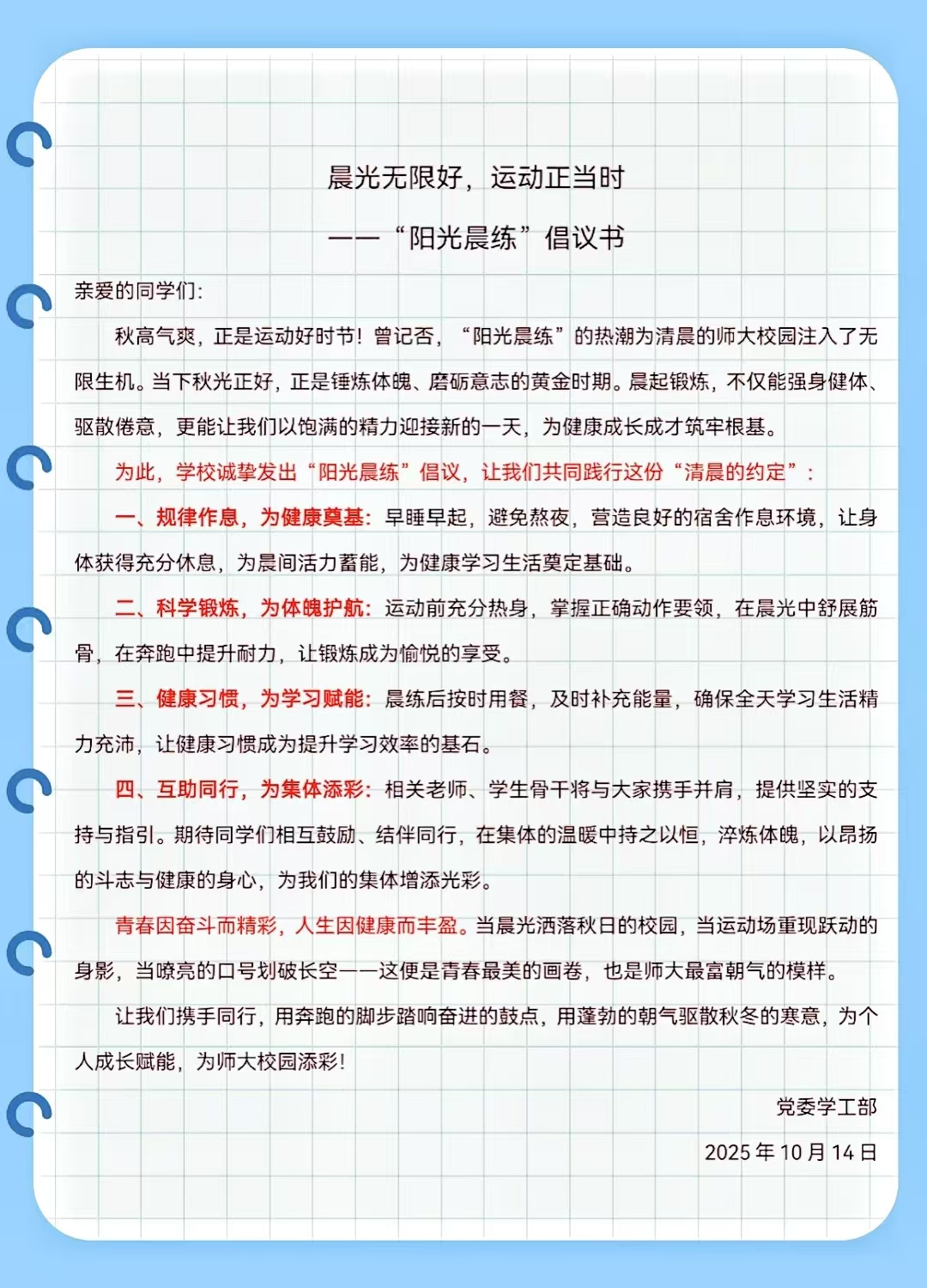 晨光无限好,运动正当时——“阳光晨练”倡议书