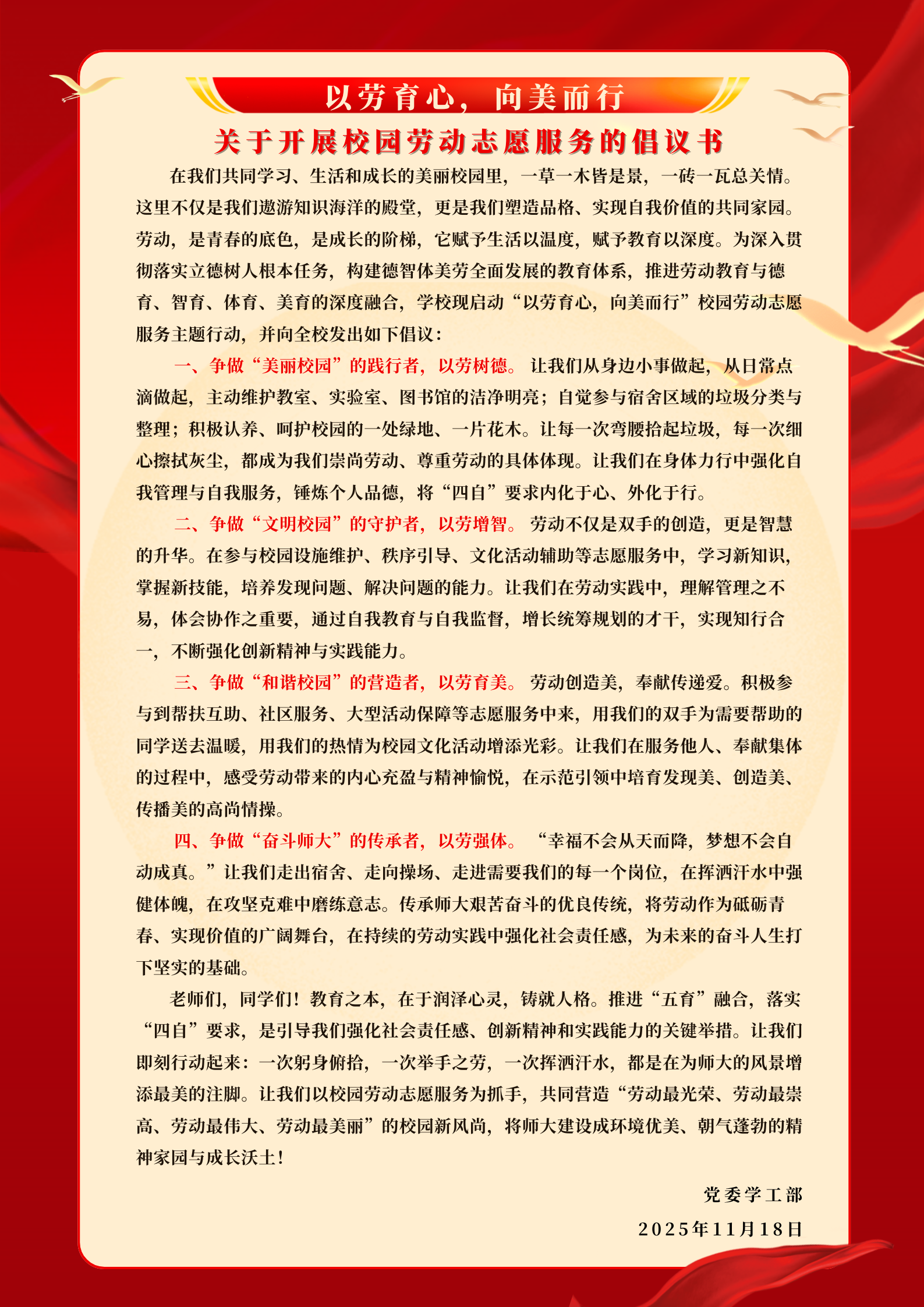 以劳育心,向美而行——关于开展校园劳动志愿服务的倡议书