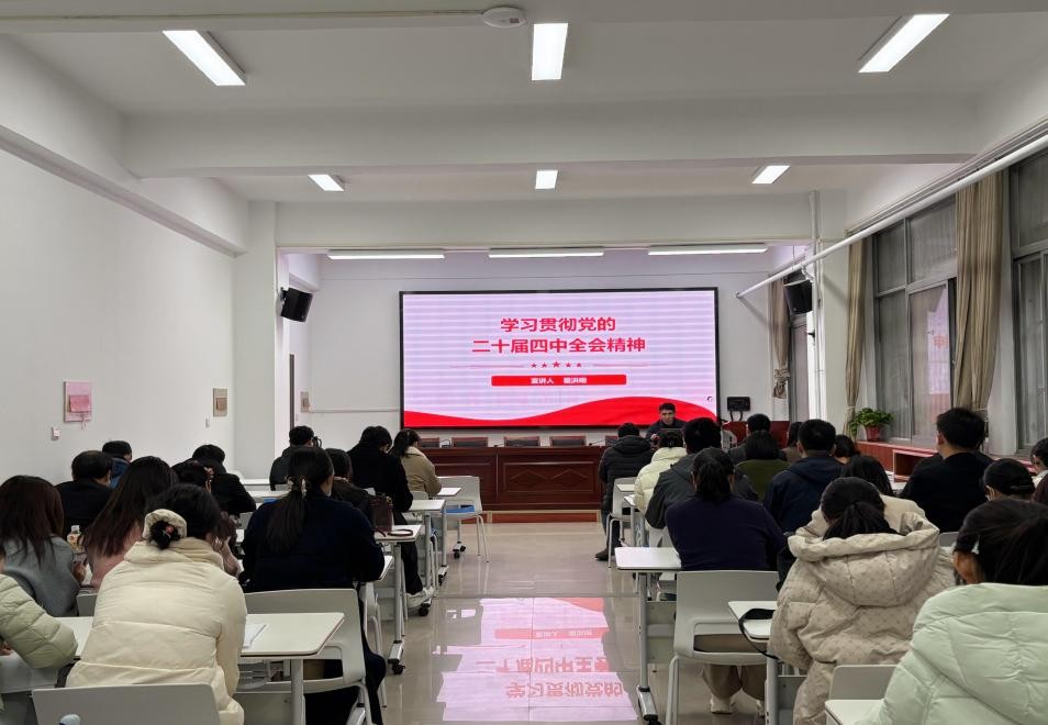 11月18日下午,社会学院于崇智楼109会议室举办学习贯彻党的二十届四中全会精神宣讲报告会。院党委书记瞿洪明主讲,学院全体教职工、学生党员代表及部分入党积极分子参加报告会。