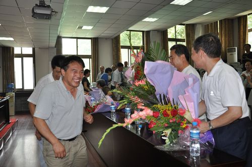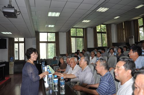 给老教师献花