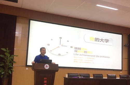 5月4号上午,我校外国语学院99届校友,上海师范大学旅游学院、上海大美国际旅行社总经理姚明广在外国语学院报告厅举行“我的大学”主题讲座。外语学院百余名师生聆听了此次讲座。讲座由外国语学院党委书记宋霞主持。
