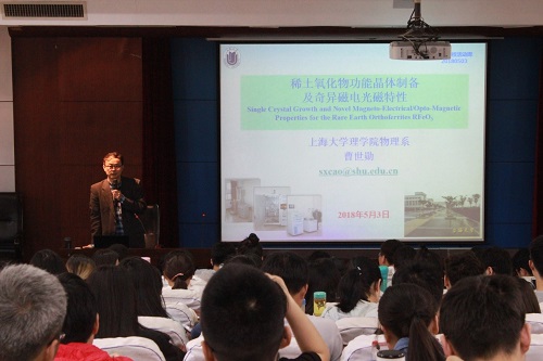 5月3日上午,我校物理与材料科学学院84届校友、上海大学博士生导师曹世勋教授回母校作了题为“稀土氧化物功能晶体制备及奇异磁电光磁特”的学术报告。报告会在物理南楼二楼报告厅举行,物理与材料科学学院相关学科带头人、研究生、本科生100余人参加了报告会。报告会由物理与材料科学学院院长杨宗献主持。