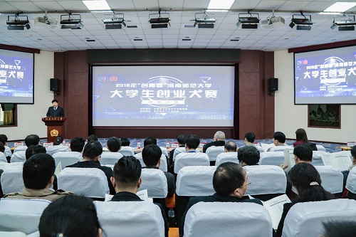 创新凝聚力量,创业放飞梦想。4月14日-16日,我校2018年“创青春”大学生创业大赛终审决赛顺利举行。原河南省文联主席、河南省书法家协会主席杨杰,校党委书记赵国祥莅临现场指导。校党委副书记陈广文出席活动并发表讲话。河南科隆集团有限公司董事长、总裁、我校政治与公共管理学院87届校友程清丰,新乡拓新生化股份有限公司董事长、我校化学化工学院83届校友杨西宁,河南东海复合材料有限公司董事长、我校化学化工学院85届校友王鸿军等企业代表出席活动,并与我校签订大学生科技创新实践基地框架协议。党委学工部、党委研工部、校友工作办公室、就业创业指导服务中心、校团委等相关职能部门负责人,各学院党政领导,评审专家、指导教师、团委书记及学生代表共两千余人参加了终审决赛开幕式、问辩、答辩、作品展示等活动。