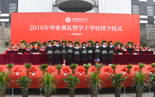 闲云河影日悠悠,物换星移几度秋。6月8日上午,我校2016届学生毕业典礼暨学士学位授予仪式在图书馆广场前隆重举行。校领导郑邦山、常俊标、史战芳、孙先科、李雪山、马治军、张现周、岳杰勇出席典礼,各学院书记(院长)、副书记、教师代表和各职能部门负责人及2016届毕业生参加了典礼。典礼由副校长李雪山主持。