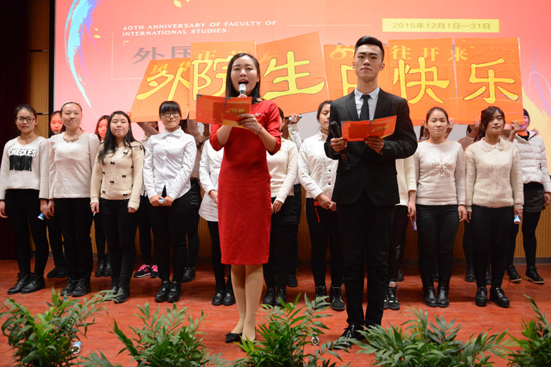 桃李盈门贺四十华诞,芝兰满室描千秋蓝图。12月27日晚,为庆祝外国语学院建院四十周年,外学国语院专业实践汇报演出在院学术报告厅成功举办。外国语学院党委书记宋霞、院长梁晓冬、党委副书记赵红杰等领导携外院老师及校友出席此次活动,百余名学生观看汇演。