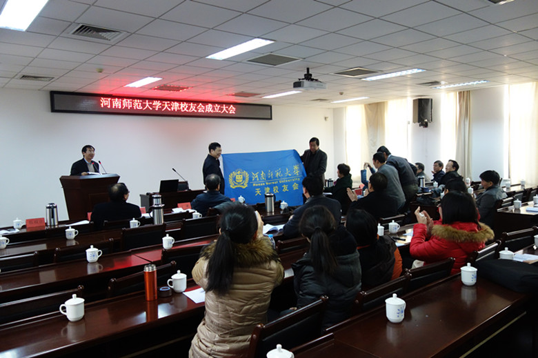 朱华北秘书长代表校友总会向天津校友会赠会旗