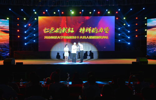 首届“校园十大育人楷模”的10位老师用他们在教学、科研、管理、服务等岗位上的感人事迹向大家展示了师大人严谨笃学、开拓创新、甘为人梯的精神风貌。生活节俭却奢华于读书的王记录、“学术女神”高书燕、严中有爱的周建国、“处长妈妈”皇甫艳玲、爱生胜过爱子的侯新杰、“健康天使”余孟兰、品学双馨的孔祥会、“获奖老师”侯学萍、为人低调但内心追求极高的陈鹏、“冠军团长”梁潇——这一位位老师铸就了师大发展的基石,又似一面面旗帜,引领学生成长,关爱学生成才。颁奖环节特别邀请了优秀学生代表和校友代表为育人楷模颁奖。