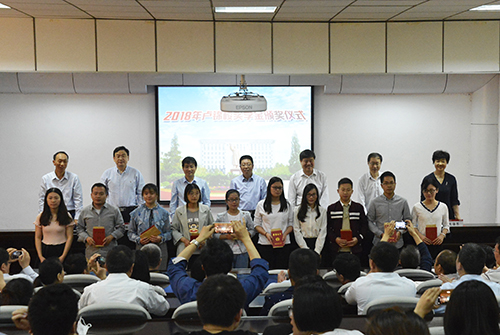 杜晓田指出,今天的颁奖仪式是一堂鲜活的思想政治课,感谢魏冬青教授这样感恩母校、关心母校的校友,使广大研究生能够在学习成长的道路上切实体会实践奋斗和感恩,希望研究生们结合专业特点,求真学问、练真本领、知行合一、做实干家,牢记幸福都是奋斗出来的。“卢锦梭奖学金”基金会负责人卓克垒介绍了基金的创立和发展,化学化工学院院长张贵生宣读了获奖学生名单,物理与材料科学学院2015级博士生张喜林作为获奖代表发言。与会领导向获奖的5名博士和30名硕士研究生颁发了荣誉证书和奖金。