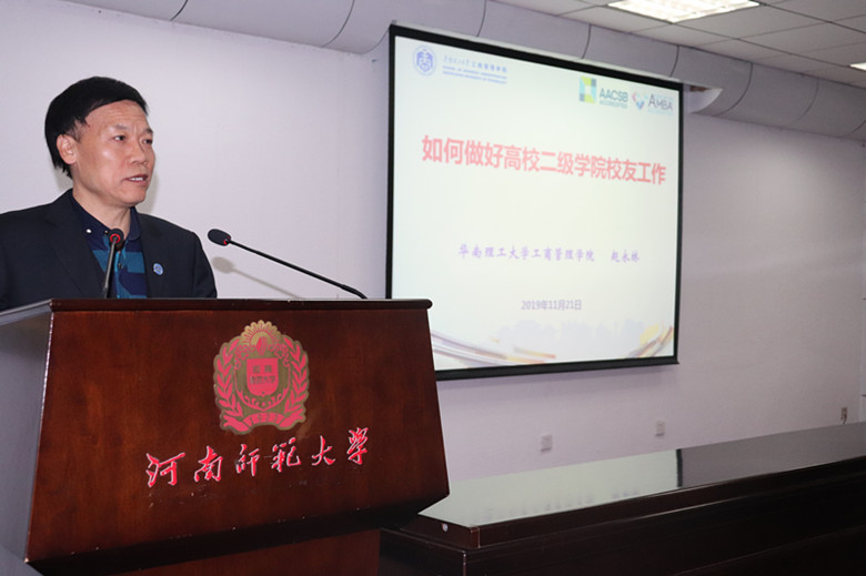 赵永林从充分认识做好校友工作对二级学院建设和发展的重要性、如何开展学院校友工作和关于校友工作的几点思考三个方面作了《如何做好高校二级学院校友工作》的报告。他结合自己多年来的工作经历和实践,以形象生动的事例展现了华南理工大学在校友工作方面的经验和做法。