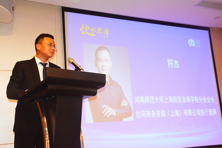 上海校友会商学院分会首任会长、拉码商务咨询(上海)有限公司总经理、商学院2010届校友符杰做了表态发言,他感恩母校、母院的培育之情,感谢母院和校友的信任,表示决不辜负母校、母院和校友重托,遵循“全心全意为校友和母校服务”的宗旨,加强自身建设,努力把上海校友会商学院分会打造成校友情感交流、信息沟通、增进友谊、合作互助的平台,为母校、母院和校友发展贡献力量,为母校、母院赢得更多的荣誉。