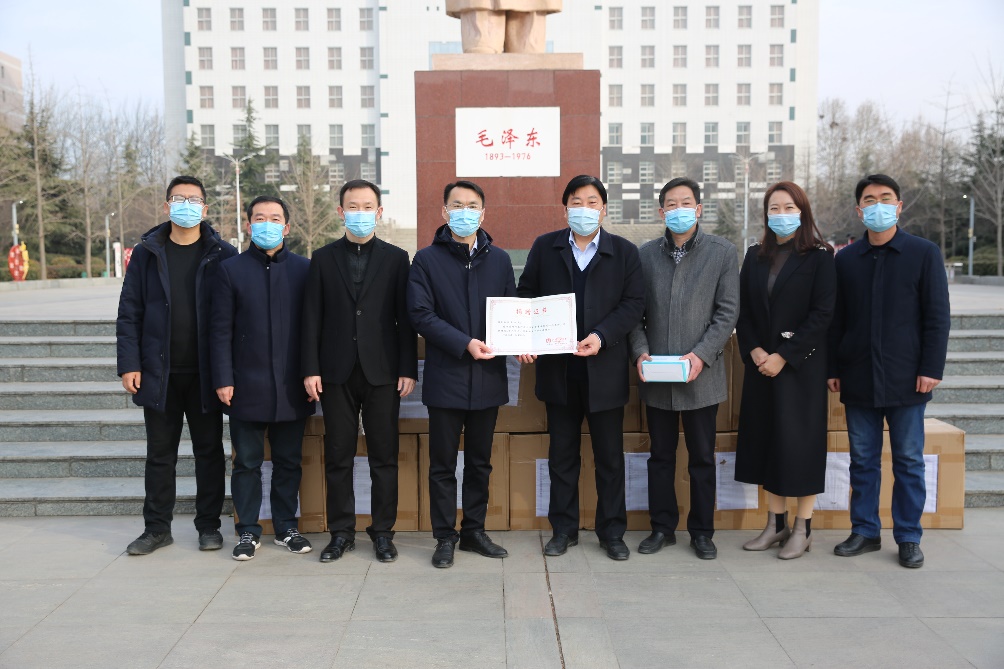 2月1日上午,我校校友企业家、商学院2010届毕业生符杰向母校捐赠新冠肺炎疫情防控物资仪式在图书馆前广场举行。校党委副书记陈广文代表学校疫情防控指挥部接收捐赠,校长办公室、校友与基金工作办公室、校医院、商学院相关负责人参加捐赠仪式。