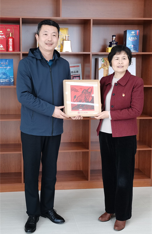会后,孟超向河南农业大学校友联络办公室赠送了我校文创产品并合影留念。