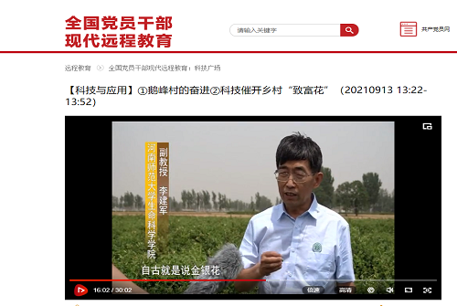 9月13日,我校副教授李建军科技扶贫先进事迹,通过中共中央组织部门户网站“共产党员网(网址http://www.12371.cn/)”全国党员现代远程教育科技与应用栏目面向全国近九千万共产党员和全社会播出。