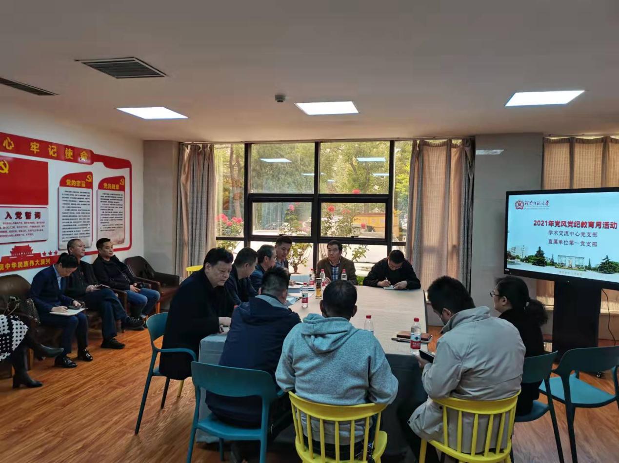 2021年10月26日,直属单位第一党支部与学术交流中心党支部在学术交流中心党建活动室联合开展支部学习活动。本次活动由学术交流中心党支部书记张向东主持。