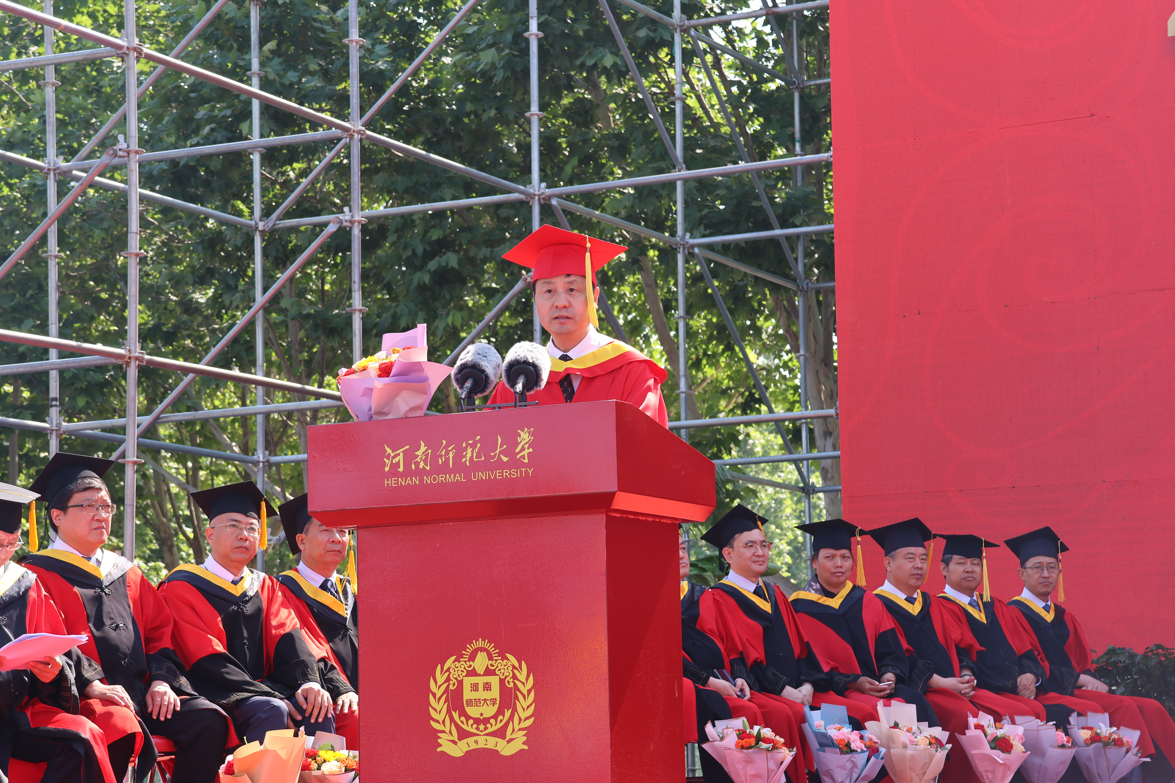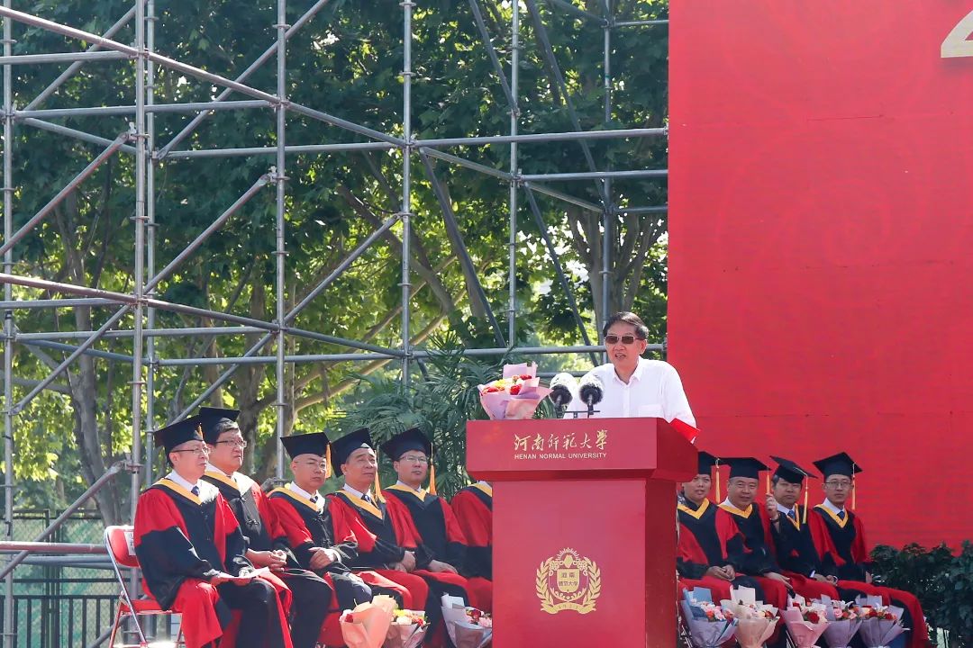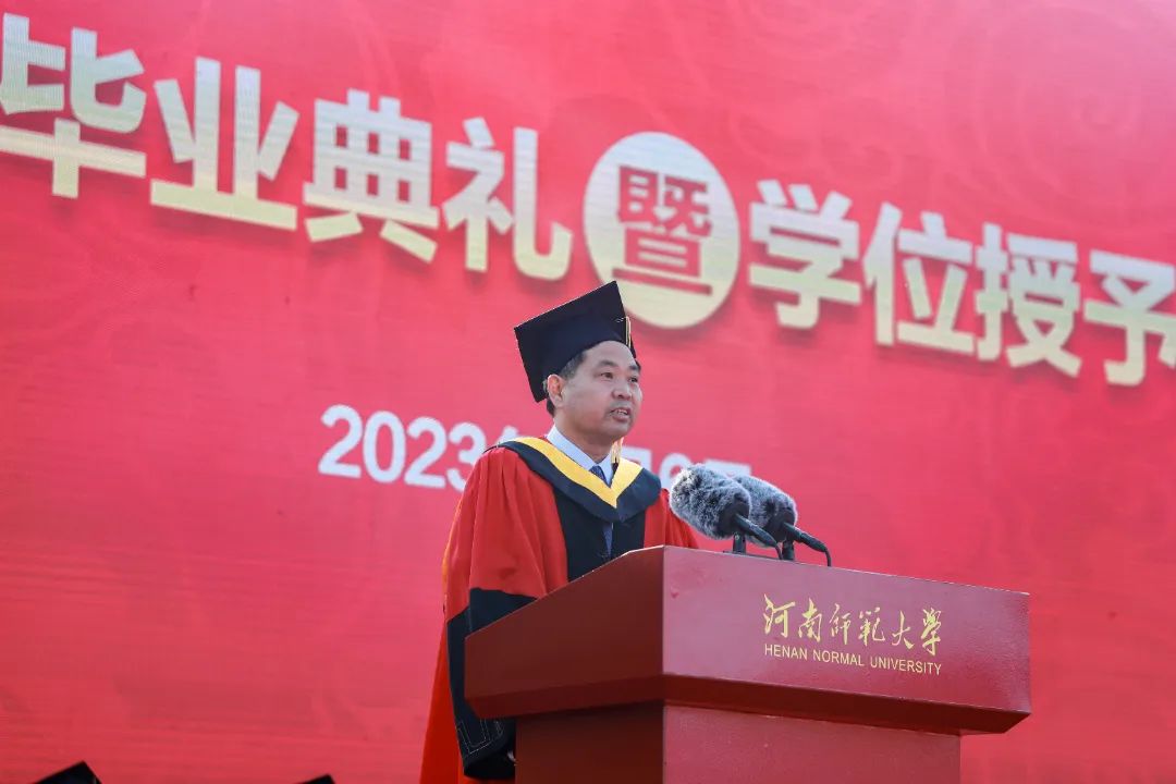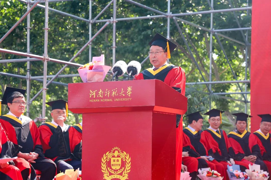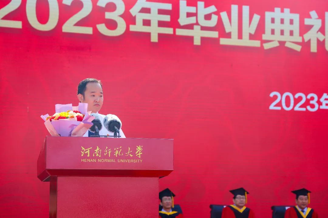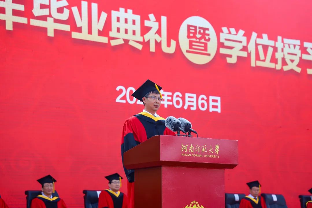 润物无声育桃李,春风化雨见真情。教师代表、外国语学院张军民在发言中激励全体毕业生,持续涵养家国情怀、投身强国伟业,厚植奋斗基因、不负师大精神,严守人生底线,砥砺卓越品格,不断创造精彩人生。