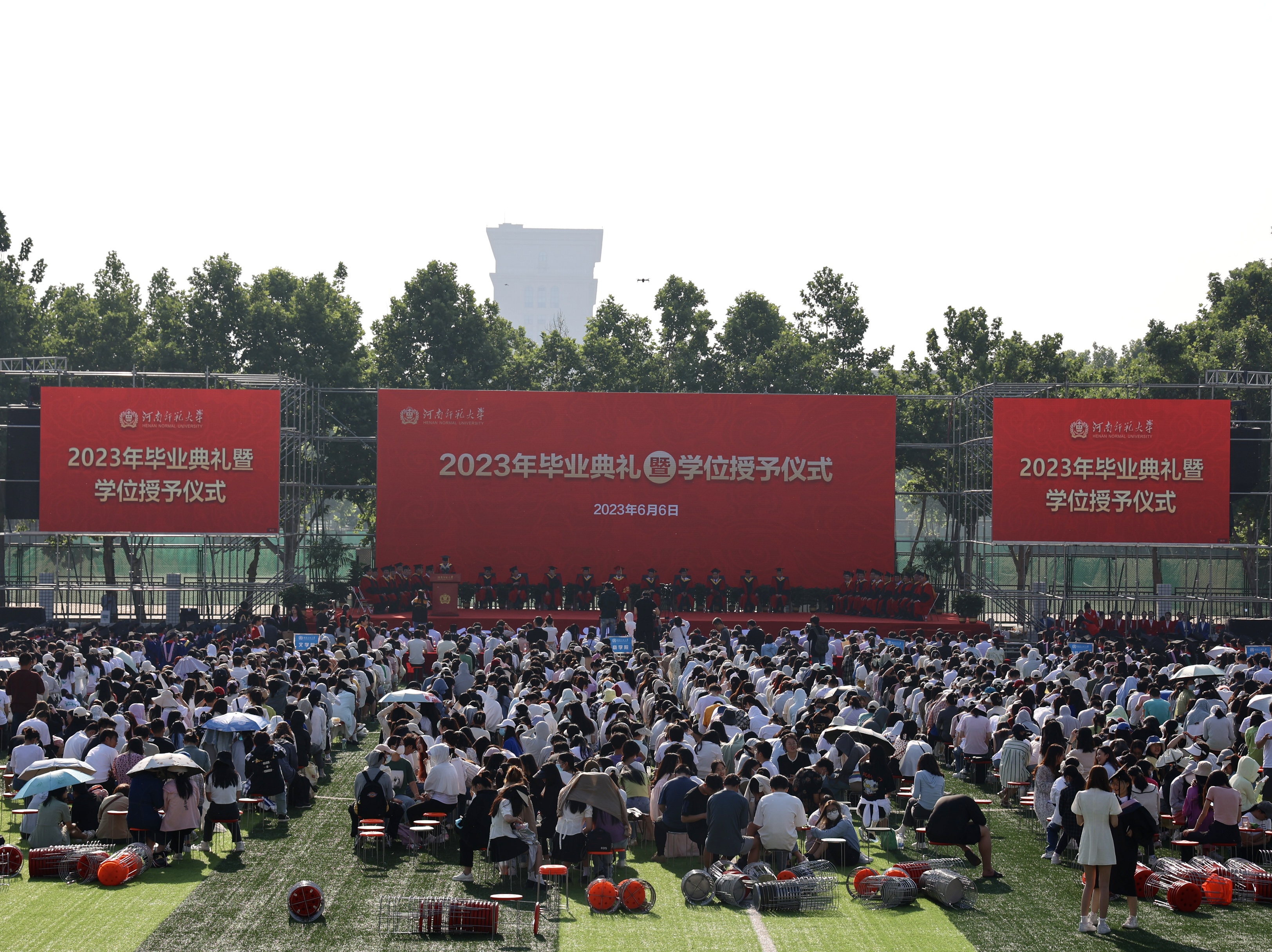 6月6日清晨,我校2023年毕业典礼暨学位授予仪式在西区操场隆重举行。校领导,相关职能部门负责人,各学院(部)院长(书记)、副书记、教师代表、毕业班辅导员,校友代表,2023年全体毕业生,2022年部分毕业生代表参加了典礼,共同见证毕业生扬帆启航、踏上人生新征程的荣耀时刻。校党委常委、副校长马治军主持典礼。