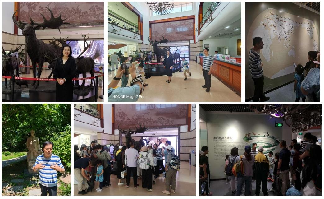 活动伊始,生物分会会长刘昕讲话,对参加本次活动的各位校友表示热烈欢迎。她表示,麋鹿被称为“湿地精灵”和“四不像”,希望通过本次活动,大家能够了解更多关于麋鹿的知识,感悟人与自然和谐相处的美好。随后,一行人在孟庆辉老师的带领下参观了北京南海子麋鹿苑博物馆。孟老师通过对北京麋鹿苑的由来、发展历史、麋鹿的进化、鹿角的生长、世界灭绝动物以及鹿文化地讲解,让大家了解到麋鹿作为中国古老物种的代表不仅承载着深厚的历史文化底蕴,同时也是传承中国鹿文化的重要载体。随后,孟老师带领大家走进麋鹿核心保护区,近距离观察麋鹿的栖息环境与生活习性。在孟老师的讲解下,大家明白了保护生态环境的重要意义,以及正确的保护生态的理念。