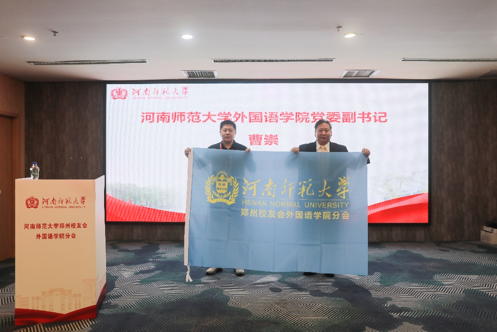大会在庄严的国歌声中拉开帷幕。筹备工作小组成员戚继东介绍了郑州校友会外国语学院分会的筹备情况。会议表决通过了郑州校友会外国语学院分会第一届理事会人选,李哲任会长,戚继东任秘书长。校友与基金工作办公室副主任王天意宣读了《关于同意成立伟德官网下载苹果版郑州校友会外国语学院分会的决定》。外国语学院院长刘国兵为郑州校友会外国语学院分会会长、副会长、秘书长、理事颁发聘书,党委副书记曹崇为郑州校友会外国语学院分会授旗。