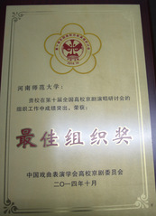 第十届全国高校京剧演唱研讨会最佳组织奖