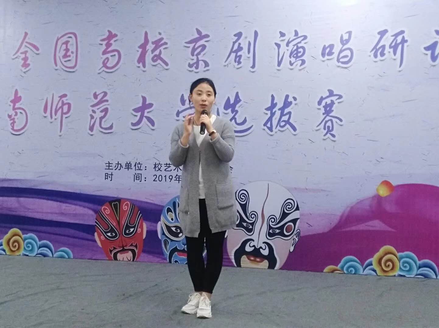 本次活动共有30名选手参与选拔,选拔赛在历史文化学院赵晶晶锁同学的《锁麟囊》演唱中拉开序幕,音乐舞蹈学院李瑞英同学的《穆桂英挂帅》也让大家赞声连连,同学们精彩的表演让一个一个存在于历史故事的人物鲜活生动起来,化学院马一鸣同学在《胭脂宝褶》中凭借婉转张扬的唱腔,张弛有度的表演,把现场气氛推到了高潮,以优异的评分名列前茅。经过2个小时的紧张角逐,最终评选出10位同学入围,他们将于2019年7月15日至20日代表我校参与由中国戏曲表演学会高校京剧委员会在甘肃省兰州市举办的“第十四届全国高校京剧演唱研讨会”。