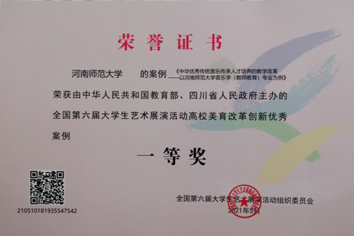 全国第六届大学生艺术展演活动高校美育改革创新案例一等奖