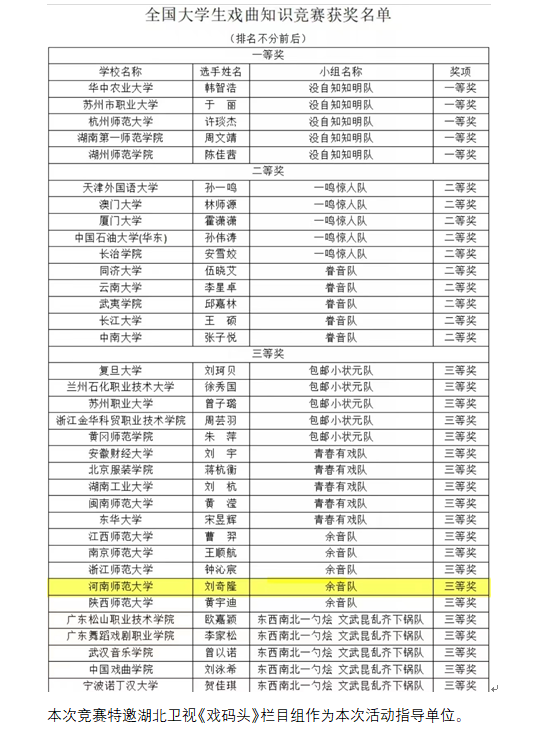 学生在全国大学生戏曲知识线上竞赛活动获三等奖