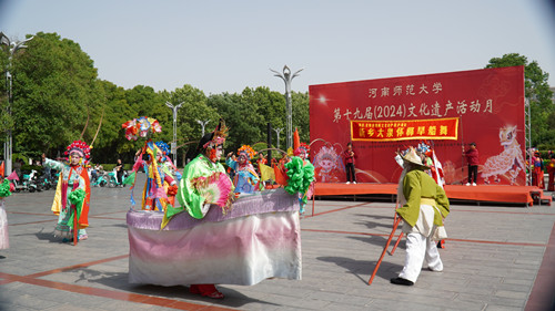 当天下午,在校帕瓦罗蒂音乐厅举行了怀梆专场表演。来自沁阳市宋寨村的怀梆剧团为师生们奉献了一场精彩的怀梆演出。本次活动持续至6月15日,将在校园中开展大平调、落腔、河洛大鼓表演,以及手工艺展、大学生传统才艺比赛等多项活动。