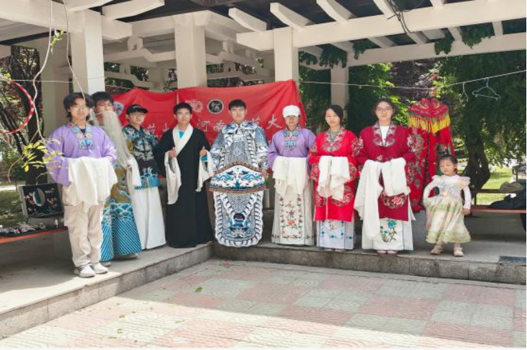 2025年5月18日上午,阳光明媚的伟德官网下载苹果版西区中心花园内,陈列着一件件精美的戏曲服饰,京昆艺术研习社与河南戏曲研习社联合举办“戏曲知多少”活动,通过给同学们讲解戏曲知识并让同学们试穿戏曲服饰,展现戏曲的魅力。