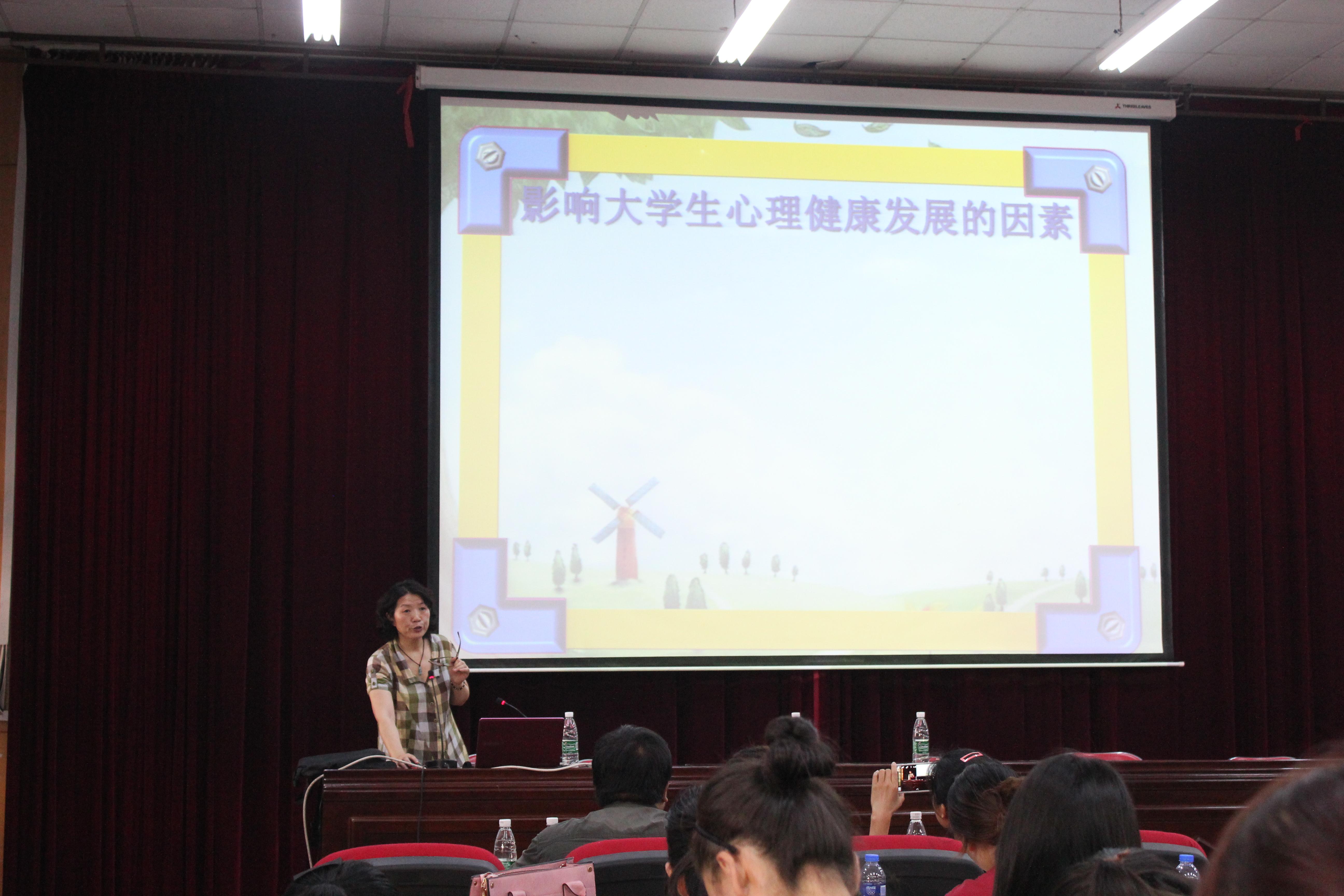 为配合学校心理健康宣传月活动,帮助大学生拥有健康的心态,应对多彩的人生,国家二级心理咨询师,校关工委素质报告团成员,校医院心理咨询师罗晓凤,应文学院邀请,于2014年6月7日上午在学校万人餐厅报告厅作了题为《如何做一个心理健康的大学生》的讲座。