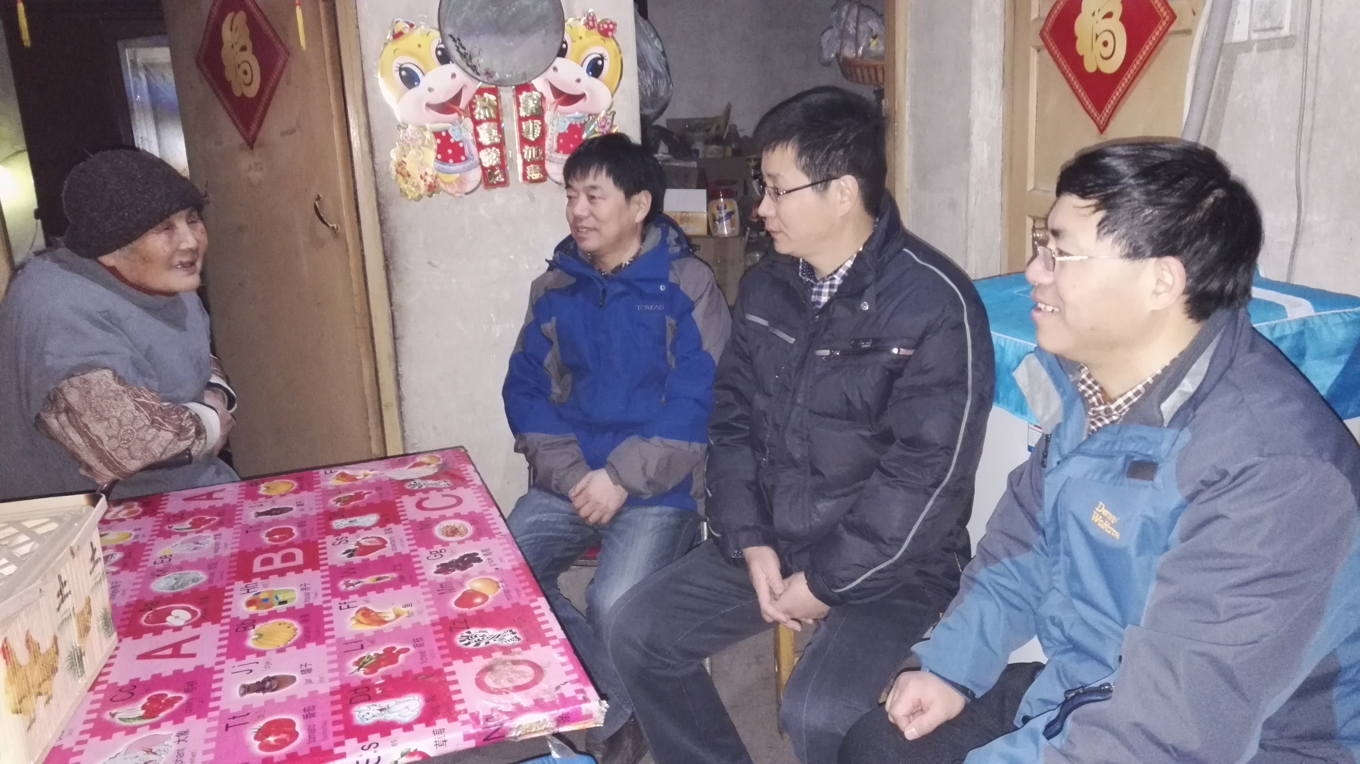 院领导与老人促膝长谈、嘘寒问暖,亲切地叮嘱老人要保重身体,并向老人送上了牛奶、鸡蛋等慰问品,预祝她新年快乐,身体健康。老人的喜悦之情,溢于言表。“每逢佳节倍思亲”,医院领导的到来,使老人深深地感受到校医院这个大家庭的温暖。真可谓是“孤寡老人不孤单,组织关怀有温暖。”