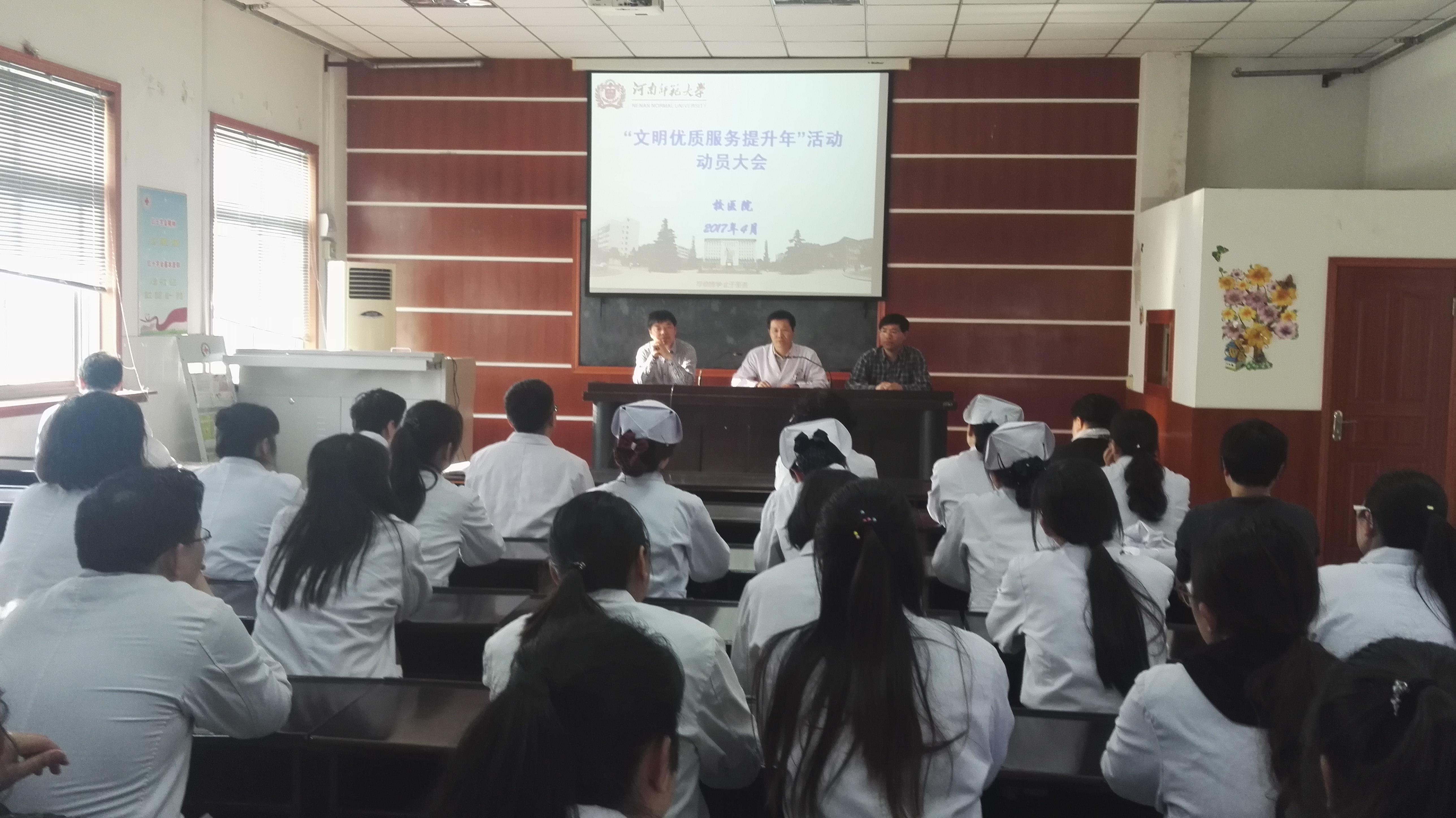 党总支书记张贺领做了总结发言。他希望全体职工要充分认识开展“文明优质服务提升年”活动的重要性和必要性,增强责任感和使命感,永远将师生和患者的健康放在第一位,扎实开展“文明优质服务提升年”活动。他要求各科室要创新思路,敢于担当,精心组织,周密安排,要从科室特点出发,对照服务标准,认真查找差距,制定改进工作的实施细则。他强调,年底要对活动情况进行全面总结,评选出若干先进科室、先进个人和诊疗服务创新项目等进行表彰,并在认真总结的基础上,整改提高,巩固成果,确保“文明优质服务提升年”活动取得实效。