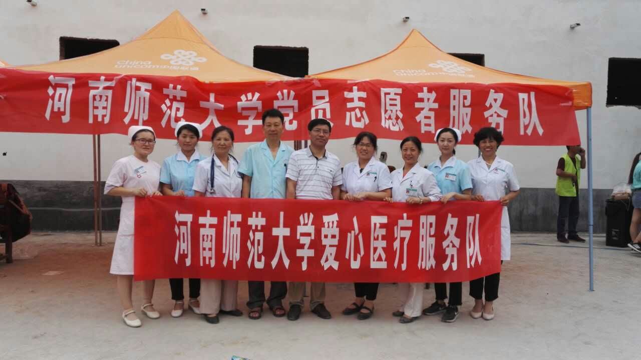 为推动我校精准扶贫工作开展,7月8日上午,校医院爱心医疗服务队与学校其他几个志愿服务团队一起来到我校志愿者社会服务基地暨我校定点帮扶贫困村——辉县市吴村镇柳湾村开展义诊活动。