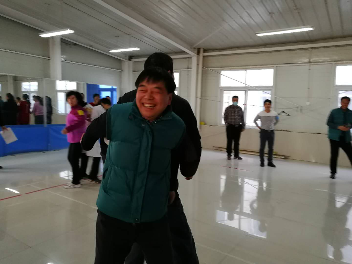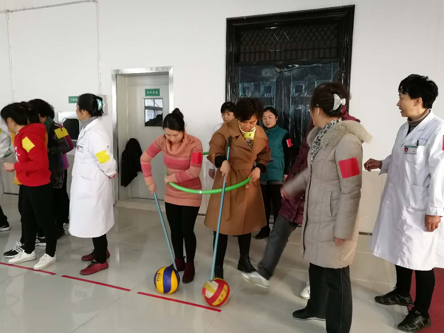 为丰富校医院职工文化生活,促进医院和谐发展,增强职工体质,校医院将12月份定为工会活动月。16日下午,工会组织了职工趣味运动竞赛。活动项目有:双人背靠背运球、双人木棍赶球、双人单手端球、手拉手穿呼啦圈、几个萝卜蹲五个。当天参加活动的院领导、职工有70余人,大家现场抓阄,分成红黄蓝三组,随着比赛开始的一声令下,大家伙争先恐后的投入到比赛中,选手们各个龙腾虎跃,围观职工的加油声不绝于耳。赛场上参赛者努力拼搏,裁判员公平负责、认真记录,好一片欢声笑语,处处洋溢着职工们的热情。经过激烈角逐,黄队和蓝队并列取得了一等奖。