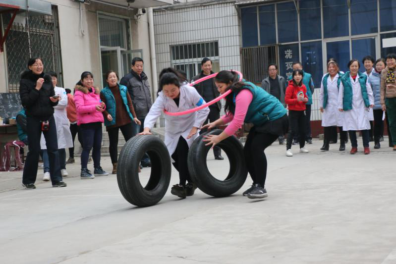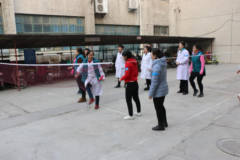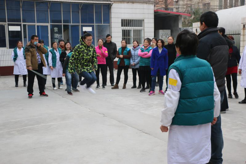 12月23日下午,在医院后院,医院工会组织了本月的第二次趣味活动竞赛。活动围绕“凝聚力量,奋发向上”的主题,坚持“友谊第一,比赛第二”的原则,开展了踢毽子对抗、滚轮胎、跳大绳等活动。共有五十余名职工和院领导参加了此次活动。现场继续采用抓阄的方法来分成红、黄、蓝三组,每组十五个人。比赛现场上三支队伍你拼我争,参赛员工相互配合,个个热情高涨,比赛进行的热闹而激烈。