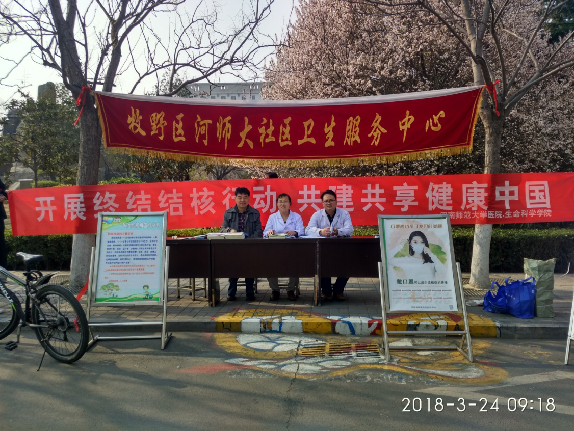 2018年3月24日是第23个“世界防治结核病日”,校医院与生命科学学院在我校西区万人餐厅旁的主干道两侧,联合开展了“结核病防治知识进校园”宣传活动。校医院副院长张建邦和生科院党委副书记陈勇亲临宣传活动现场。