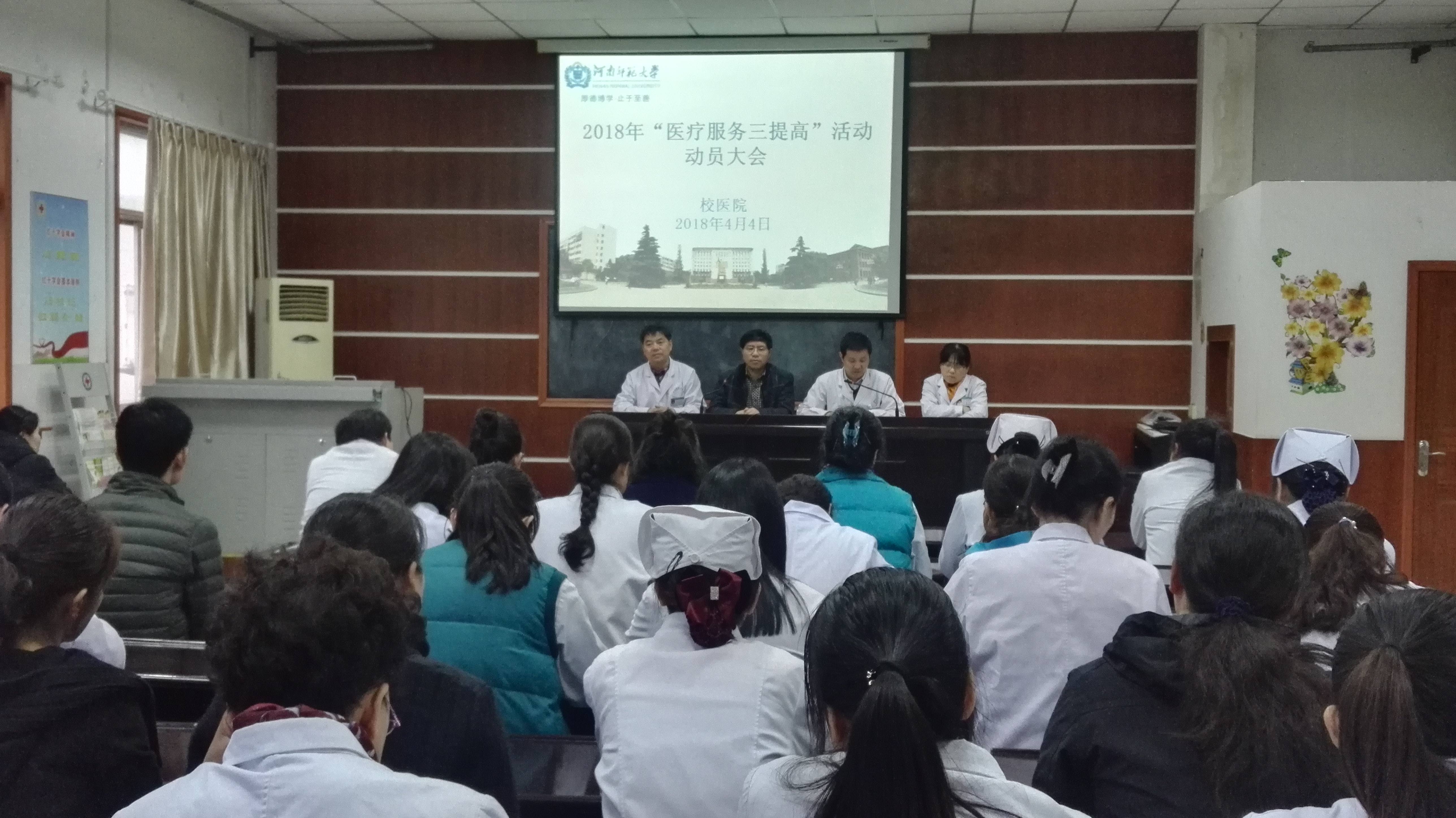 为进一步增强服务意识,全面提升医院服务能力和服务质量,4月4日下午,校医院在医院五楼会议室召开“医疗服务三提高”活动动员会,医院全体职工参加了会议。会议由医院院长朱命祺主持。