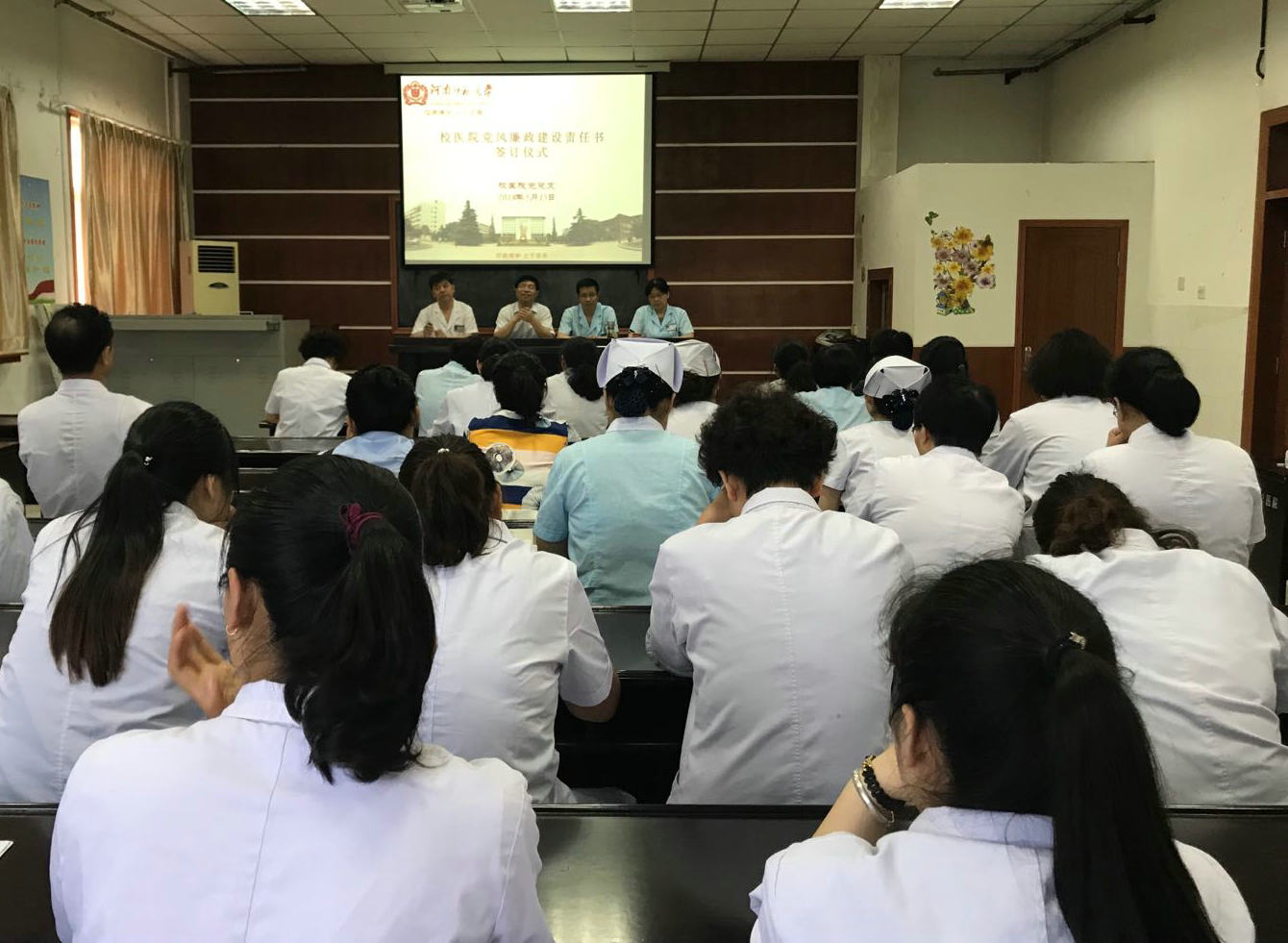 张贺领指出,举行党风廉政建设责任书签订仪式,旨在贯彻落实十九大精神,落实校党委、校纪委和上级卫生计生委党风廉政建设责任制的有关要求。他强调,班子成员要发挥好表率作用,进一步增强政治意识、大局意识、核心意识、看齐意识,敢于担当责任,勇于直面矛盾;各科室负责同志作为本科室“第一责任人”,要明确自已应承担的责任,敢于负责,勇于担当,切实做到一级抓一级,一级对一级负责。