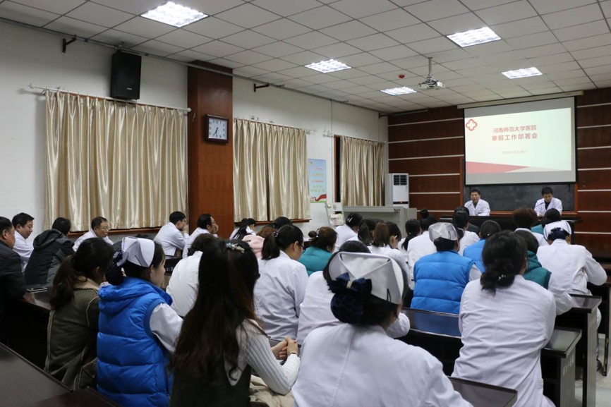 朱院长首先向职工传达了学校寒假工作部署会的精神和要求,强调在寒假期间,大家一定要遵守劳动纪律,强化服务意识,牢固树立全心全意为师生员工服务的思想,为广大师生过一个安全祥和的春节提供保障。朱院长希望大家在假期能得到适当放松和休息的同时,还能谋划一下科室和个人事业未来的发展,为下一学期的工作做好准备。张院长要求全院职工要高度重视、认真做好寒假期间医院的各项安全稳定工作,始终把安全第一放在首位,特别是消防安全和医疗安全,要提高防火意识,严禁违章使用电器,切实做到人走断电,要严格按医疗规范操作,严格执行“三查七对”制度,规范操作流程,确保医疗质量安全。同时提醒大家注意假期期间外出的交通安全和旅行安全。