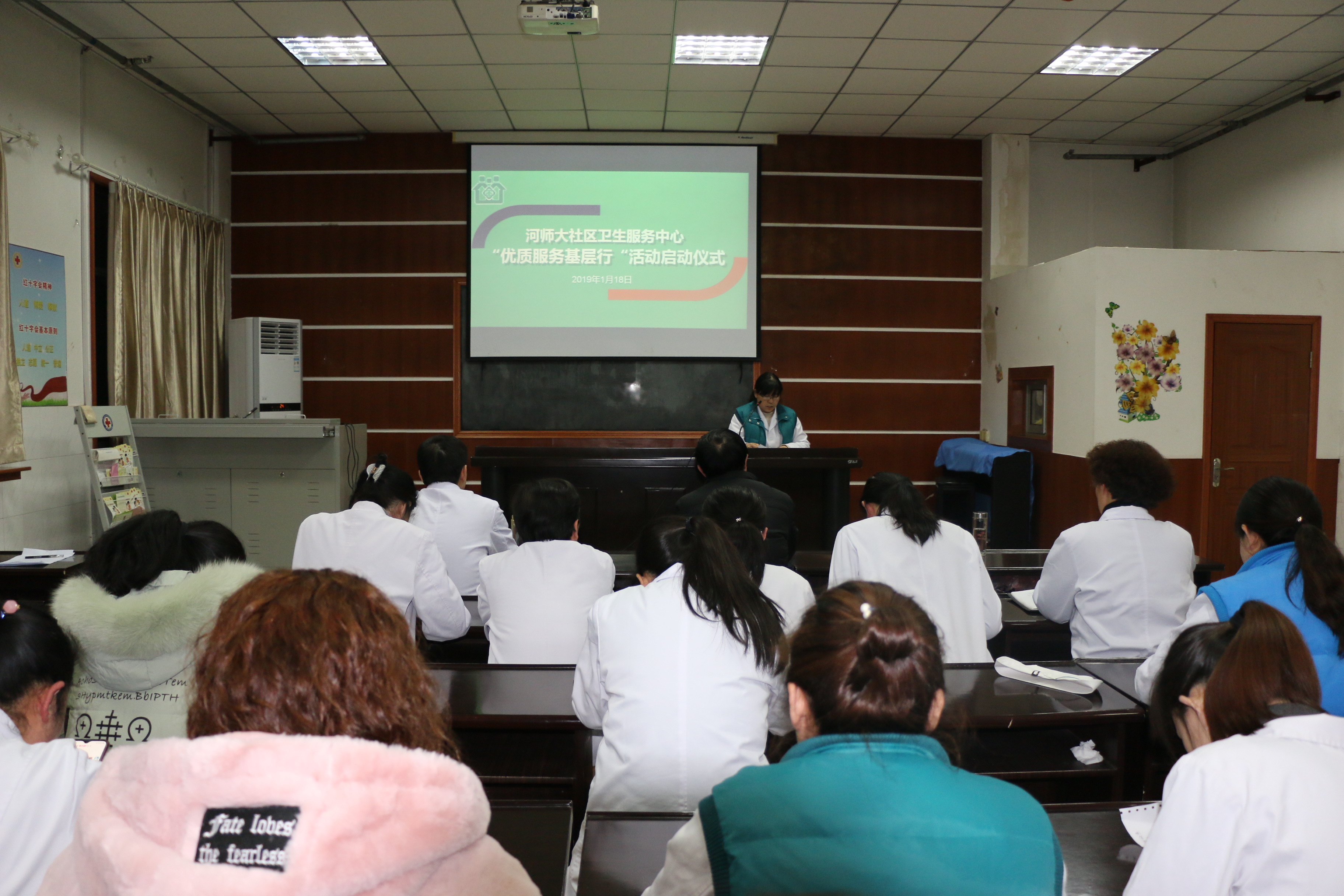 按照国家卫生健康委、国家中医药管理局关于开展“优质服务基层行”活动的统一部署和要求,河师大社区卫生服务中心“优质服务基层行”活动于1月18日正式启动。校医院和中心负责人以及全体职工参加了启动仪式。仪式由副院长谢小冷主持。