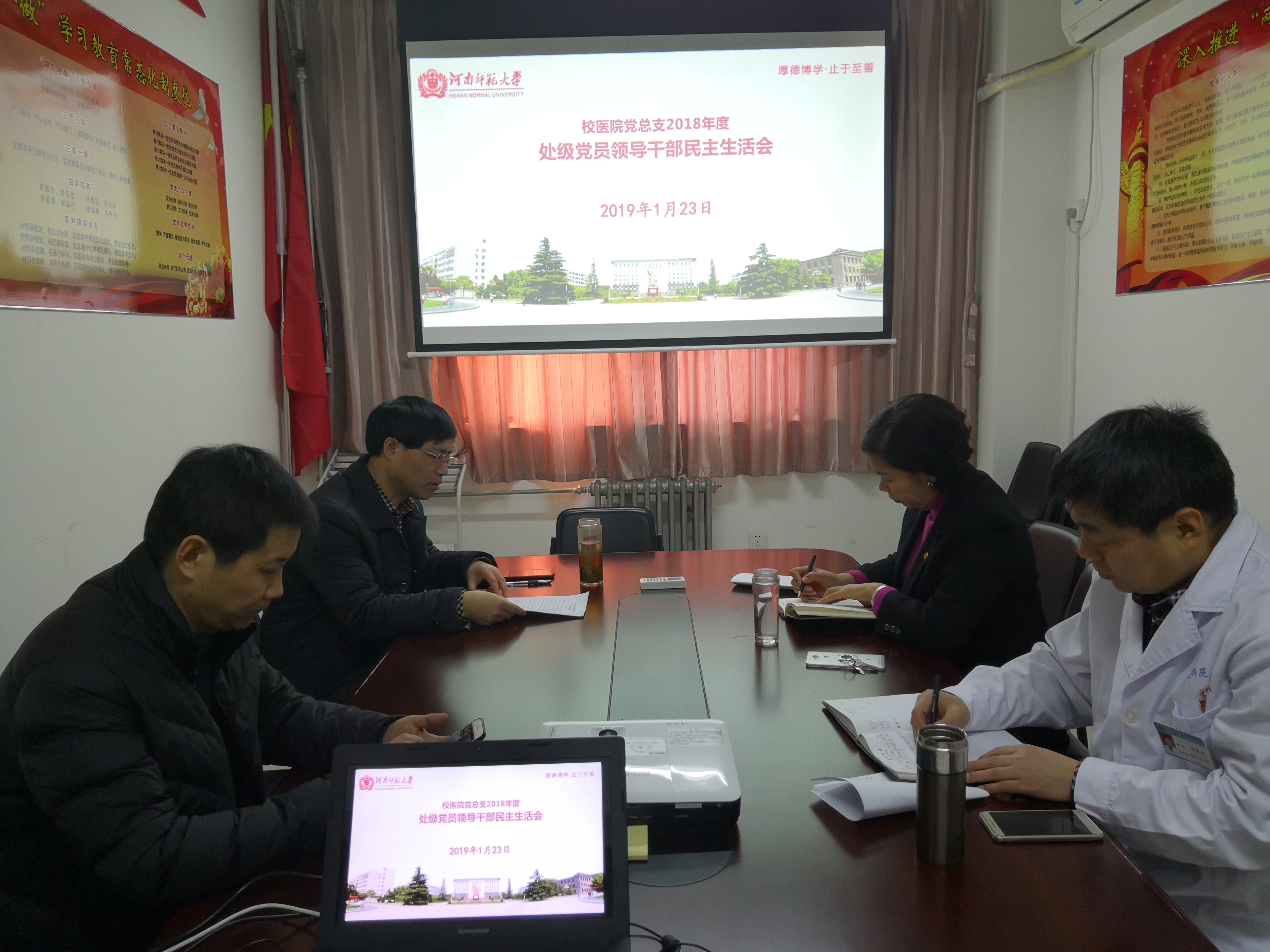 1月23日下午,校医院2018年度处级党员领导干部民主生活会在医院四楼党员活动室举行,全体处级党员领导干部参加了会议。会议由院党总支书记张贺领主持。