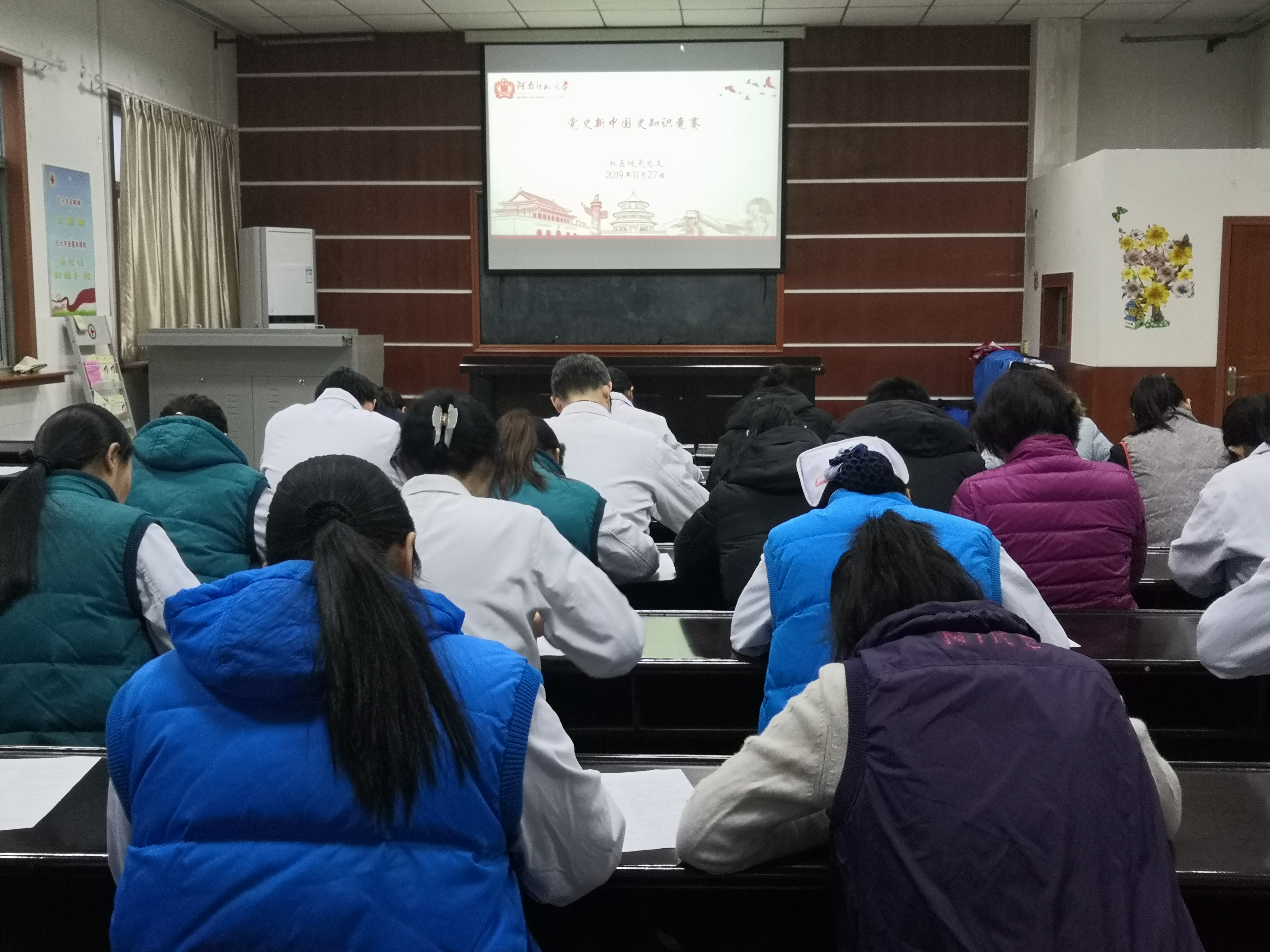 为检验“不忘初心、牢记使命”主题教育理论学习实效,推动主题教育往深里走、往心里走、往实里走,11月27日下午,校医院党总支在医院五楼会议室开展党史新中国史知识竞赛,30余名党员参加了活动。