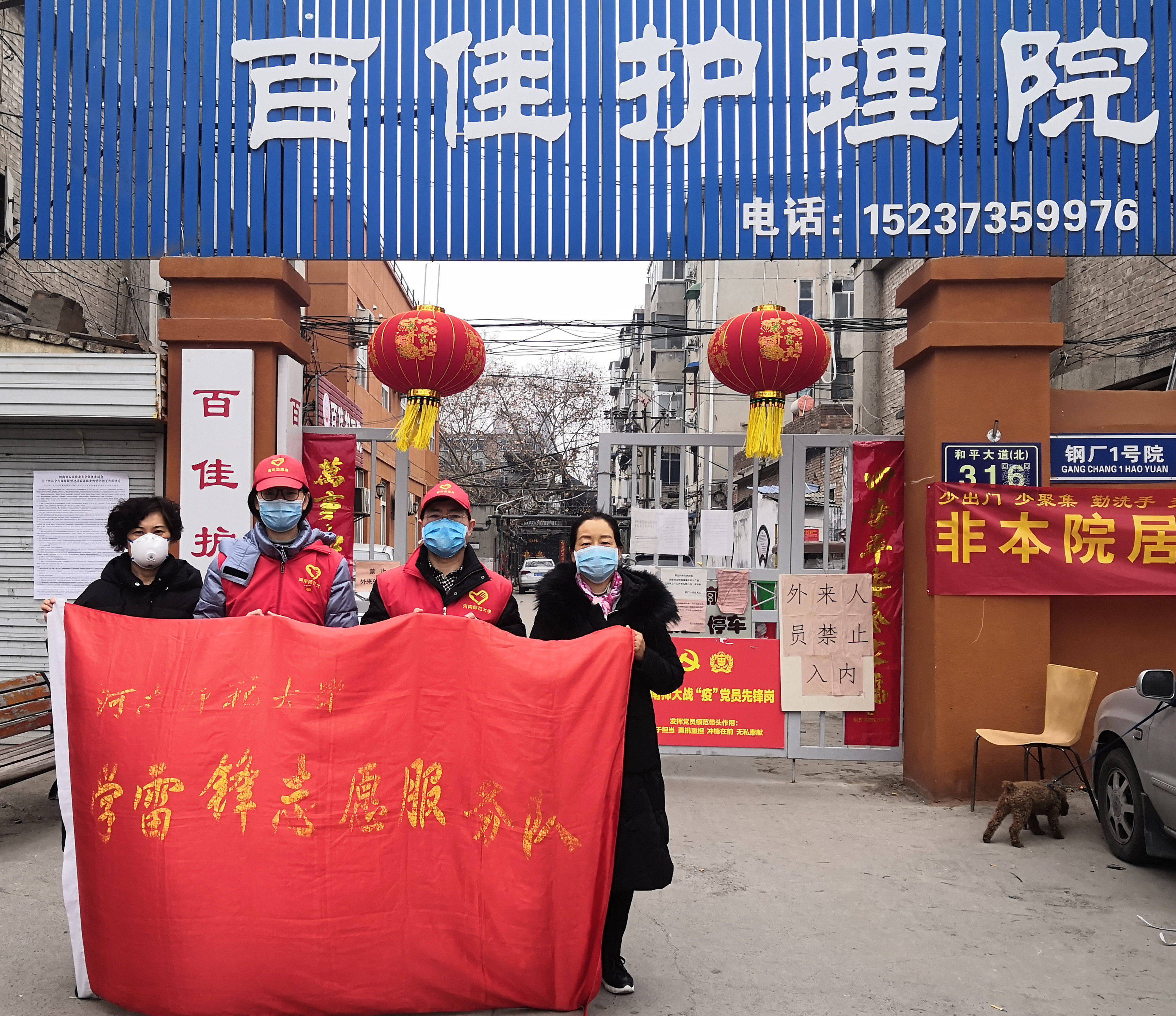 为积极响应新乡市新型冠状病毒感染的肺炎疫情防控指挥部关于进一步做好无主庭院新型冠状病毒感染防控工作要求,2月24日,校医院在党总支书记张贺领、副院长张建邦的带领下,由8名志愿者组成的党员干部志愿服务队,分别前往新乡市钢厂家属院、一技校家属院开展新型冠状病毒感染防控工作。
