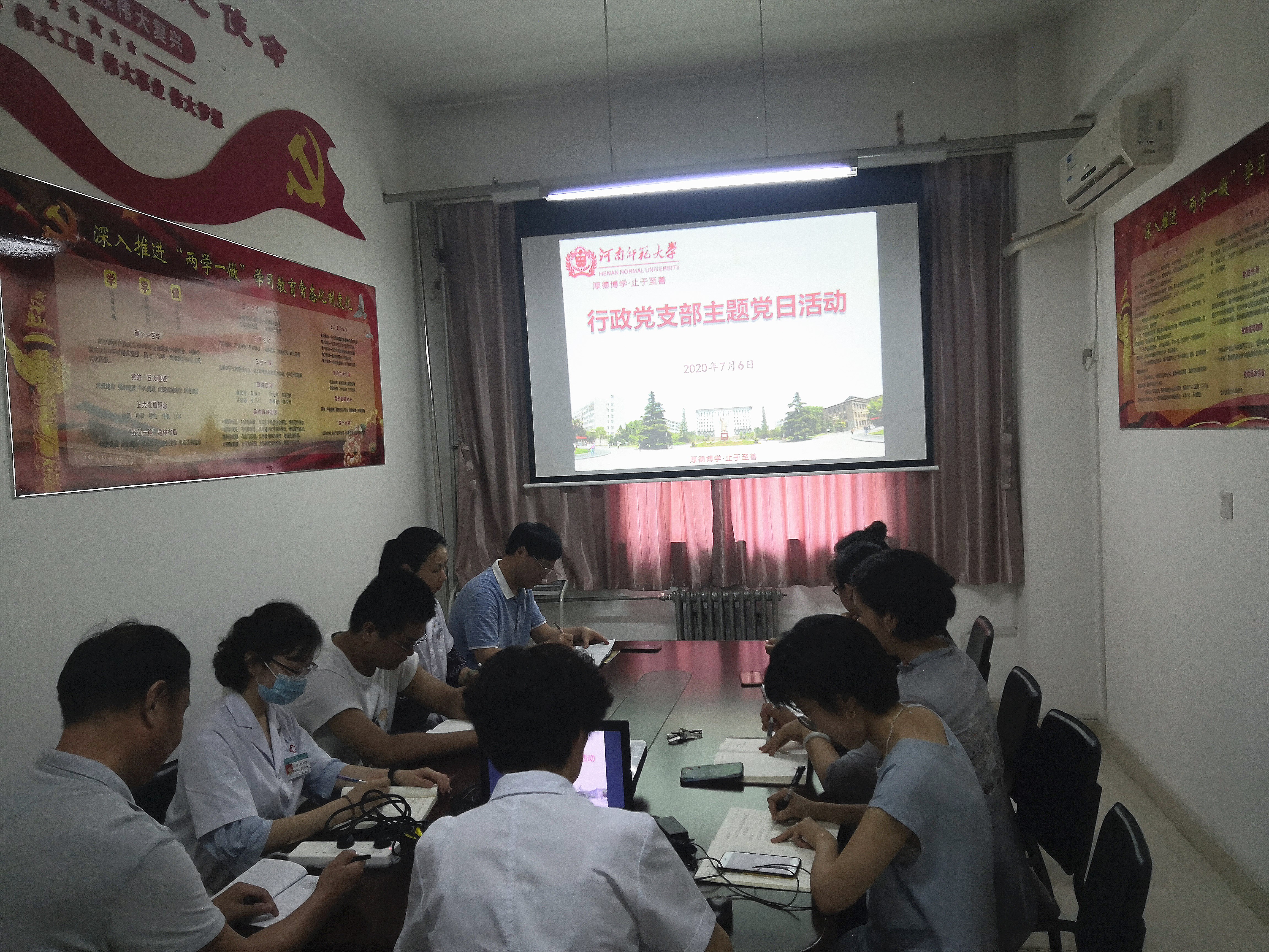 为庆祝中国共产党成99周年,激励广大党员在实现疫情防控和学校事业高质量发展中当好先锋表率,展现新担当新作为,7月6日下午,校医院行政党支部在医院党员活动室开展“牢记初心使命、争当出彩先锋”主题党日活动,党总支书记张贺领、计生办主任乔玉华以普通党员身份参加了活动。会议由支部书记曹艳萍主持。