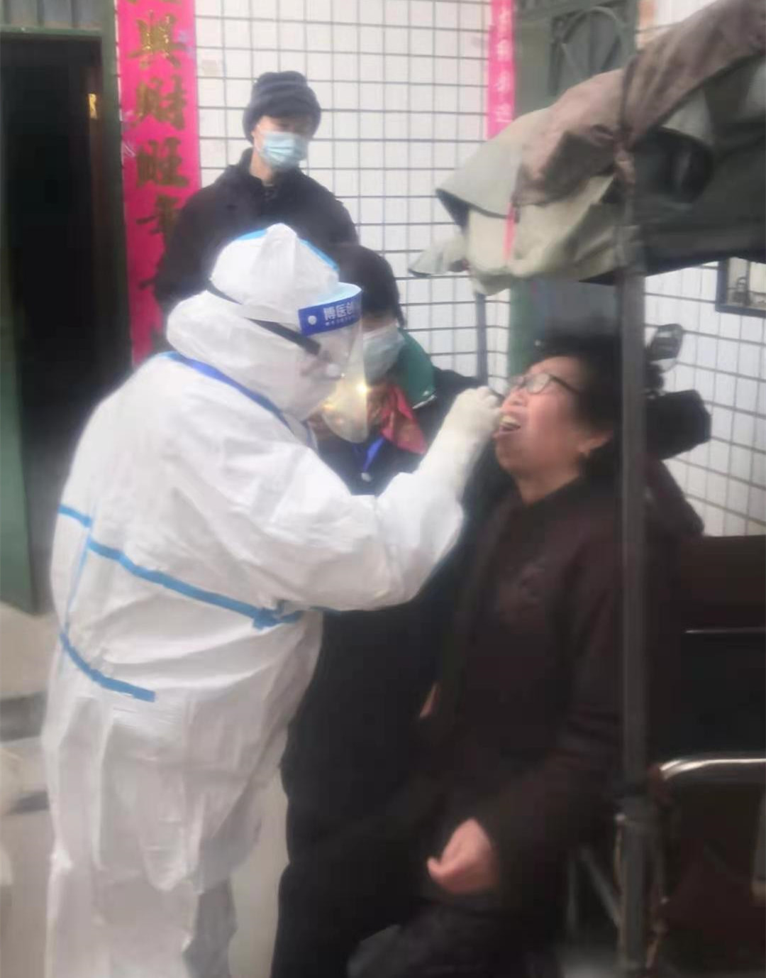 早上八时整,随着疫情防控指挥部一声令下,核酸检测咽拭子采集工作正式展开。我院三名医务人员承担了为村内行动不便老人、残障人士、婴幼儿以及其他不能到现场的村民上门采样工作。演练中她们入户详细登记村民个人信息、规范完成咽拭子采样,切实做到核酸检测不落一户、不漏一人。
