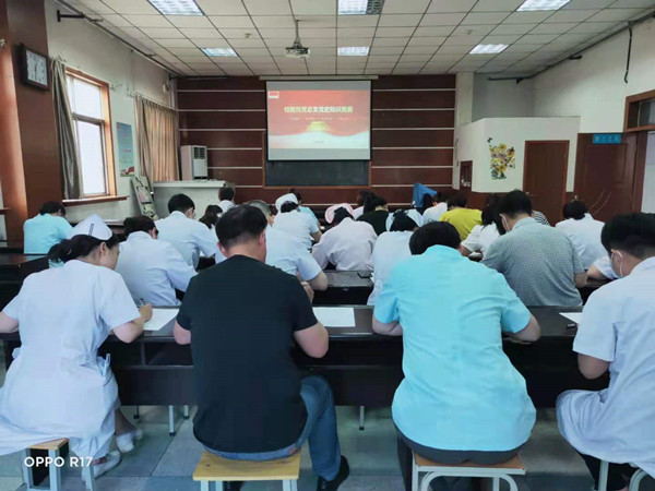 2021年6月2日下午18:00,校医院党总支在五楼会议室举行了庆祝建党100周年党史知识竞赛,总支党员、入党积极分子三十余人参加竞赛。