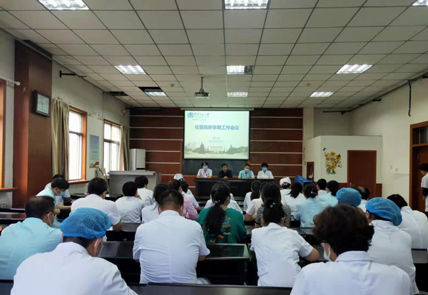党总支书记石军红传达了学校2021年新学期工作会议精神,希望全体职工要切实按照校党委书记赵国祥提出的“三个全面”和“三个坚持”为指导,深刻认识全面加强疫情防控、全面推动党的建设、全面提高干部队伍建设对学校事业发展的重大意义,认真落实常俊标校长部署的加强党史学习教育、坚持立德树人、提高核心竞争力、深化对外交流、优化内部管理等五项重点工作,立足本职工作,提高责任担当,强化措施落实,在新学期里,振奋精神,鼓足干劲,不断提高业务水平和管理水平,把新学期各项工作做实、做细、做好,为学校事业又好又快发展做出贡献。副院长谢小冷、吕岩分别就新学期疫情防控,加强院感控制和提高服务质量,加强教职工体检工作、新生入校防疫准备工作、消防安全工作等做了具体安排和要求。